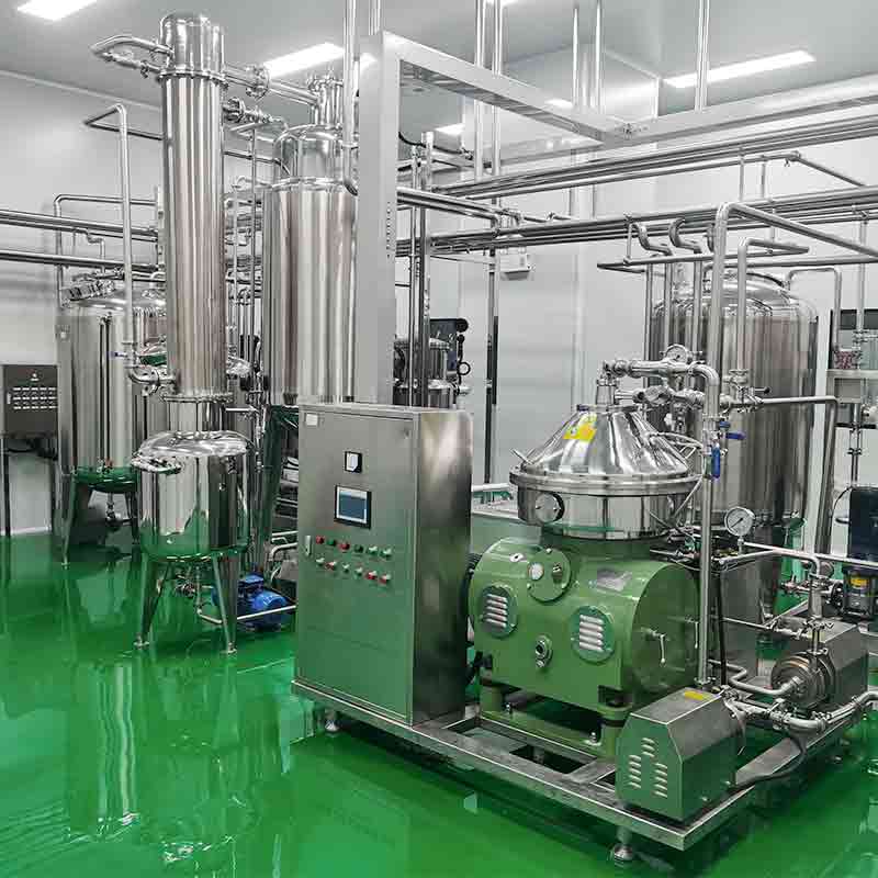 System features (1) High separation accuracy and wide range, and can be replaced with membrane elements of all membrane separation accuracy such as microfiltration, ultrafiltration, nanofiltration, reverse osmosis, etc.; (2) Highly anti-pollution concentrated membrane elements imported from the United States have a long service life and do not need to be replaced frequently;; (3) The system has high pressure, strong stability, and has overpressure and overtemperature protection. It will automatically alarm or shut down when the set value is exceeded; (4) The equipment is fully automatic controlled by PLC touch screen, with online operation and cleaning, and is easy to operate; (5) System modular design, low circulation volume, meeting the requirements of small batch experiments or pilot production; (6) Equipped with a 500L material liquid tank, the factory connects the pipeline between the system and the tank, and pneumatic valves are left in the tank liquid inlet, cleaning water inlet, and sewage outlet, so that various program parameters can be debugged in the factory; (7) All pipes in contact with the material liquid are made of SUS304 material that meets the hygienic requirements and comply with QS/GMP certification.