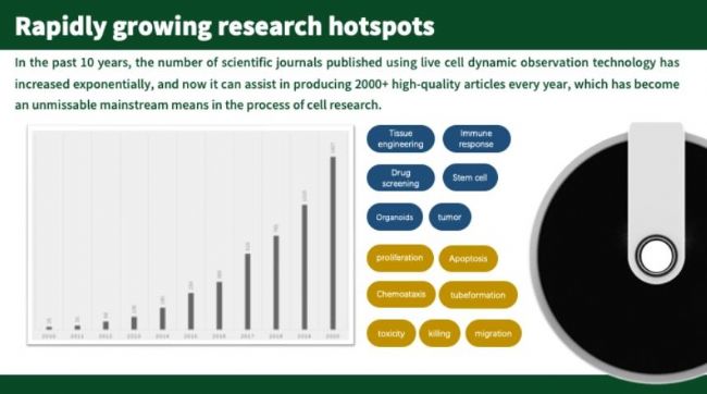 In the past 10 years, the number of scientific journals published using live cell dynamic observation technology has increased exponentially, and now it can assist in producing 2000+ high-quality articles every year, which has become an unmissable mainstream means in the process of cell research.
