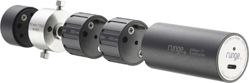The mikron 71 is the first pocket model fluorimeter in the world. The detector comes with a fixed but exchangeable wavelengths for simulation and emission.