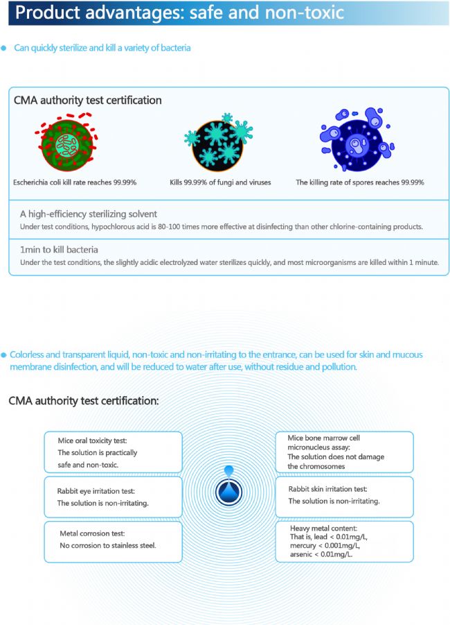 Continuous sterilize, thorough sterilize, non-toxic through the mouth, High security, automatic sterilize and long-lasting antibacterial.