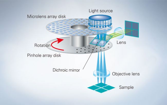 The spinning disk confocal optical system acquires images up to 200 frames per second, capturing fast intracellular dynamics within live specimens.
