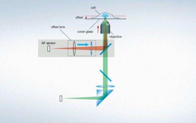During time-lapse imaging, minute changes in temperature, humidity, and other factors can cause your sample to go out of focus. The Z-drift compensator (IX3-ZDC2) uses a low-phototoxicity infrared laser to identify the sample plane and adjust the focus for clear time-lapse images. The continuous autofocus function works with glass and plastic vessels.