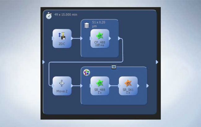 The process manager makes it simple to acquire multicolor, Z-stack, and time-lapse images. The programmable graphic experiment manager (GEM) enables users to design more complex automation from a visual interface to support a wide variety of experimental imaging protocols and device triggering. Customize flexible experiment protocols that can be easily changed as needed anytime during the imaging process.