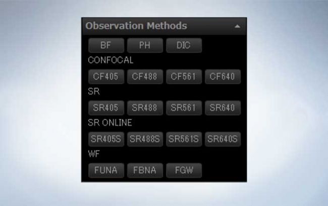 The software makes it easy for you to change observation conditions. Switch between fluorescence, confocal, super resolution, and multicolor imaging modes just by clicking a button.
