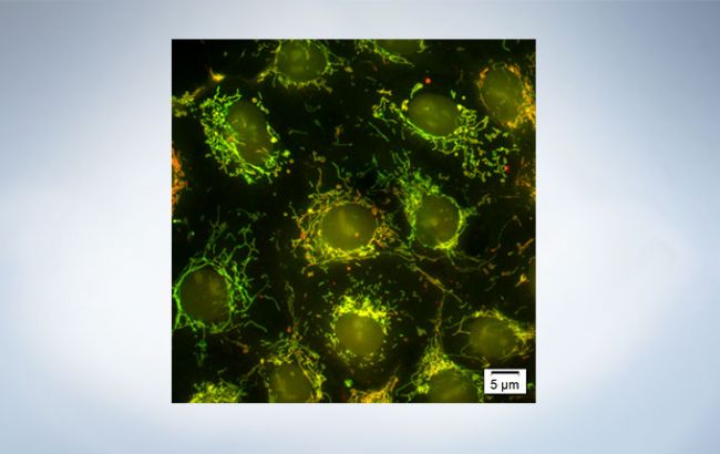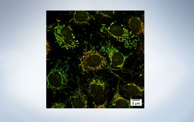 Mitochondria labeled by GFP. Acquired with 30fps, able to see the individual mitochondria movements.