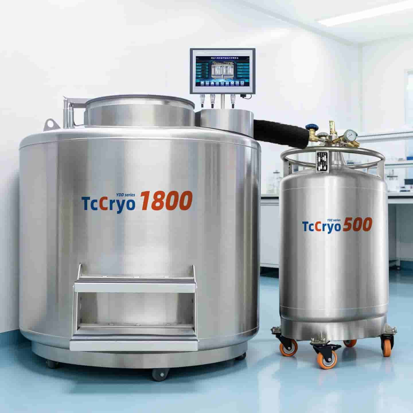 TcCryo stainless steel gas-phase liquid nitrogen tank has two different storage options for gas-phase and liquid-phase, providing customers with a safer and smarter environment for ultra-low-temperature liquid nitrogen freezing and storing, with a variety of capacities to choose from, with the use of a more convenient and safe, widely used in biological sample libraries, pharmaceutical companies, health care field of large-capacity liquid nitrogen storage environment.