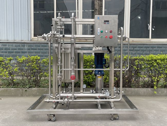 6 Equipped with a 500L material liquid tank, the factory connects the pipeline between the system and the tank, and pneumatic valves are left in the tank liquid inlet, cleaning water inlet, and sewage outlet, so that various program parameters can be debugged in the factory;