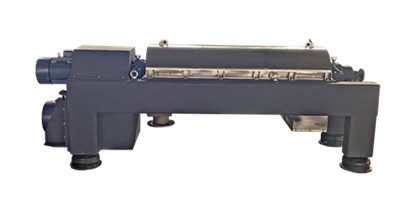 The working principle of the centrifuge is as follows: the drum and the screw rotate at a high speed in the same direction with a certain differential speed. The materials are continuously introduced into the inner cylinder of the conveying screw through the feed pipe, and then enter the drum after acceleration. Under the action of the centrifugal force field, the heavier solid substances are deposited on the drum wall to form a sediment layer. The material conveying screw continuously pushes the deposited solid matter to the cone end of the drum and discharges it out of the machine through the slag discharge port. The lighter liquid phase forms an inner liquid ring, which continuously overflows the drum through the overflow port at the big end of the drum, and is discharged out of the machine through the discharge port.