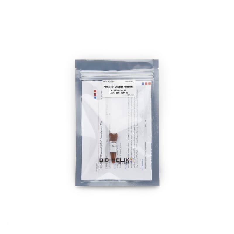 PanGreenTM Universal SYBR® Green Master Mix is a 2x concentrated, ready for use Master Mix reaction enhanced for dye-based quantitative PCR (qPCR) and compatible with the majority of commercially available real-time PCR systems (ROX-independent and ROX-dependent). It contains NanoTaq hot-start DNA polymerase, dNTPs, MgCl2, SYBR® Green I dye, enhancers, stabilizers and essentials for a success PCR reaction.