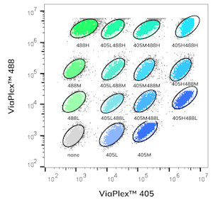 * ViaPlex™ enables fluorescent barcoding of up to 15 cell populations in a single tube to reduce reagent use, save time, and increase throughput for flow cytometry workflows.
