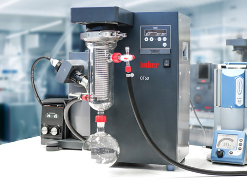 The Huber CT50 cold trap offers direct, rapid cooling to temperatures as low as -50°C as well as low operating costs. Its compact design takes up minimal space on the laboratory bench. Thanks to the natural refrigerant, the cold trap works in an environmentally friendly manner. It is also robust and durable due to the high-quality materials used in its manufacture. The evaporator is made of stainless steel, and on request can be coated with resistant polytetrafluoroethylene, ceramic polymers etc. The cold trap comes with a drip tray, and a glass accessory set is also available to order.