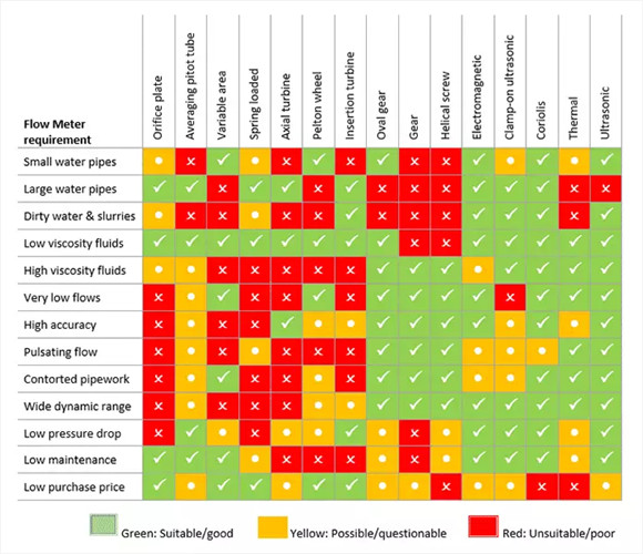 The basic physical techniques that flowmeters work to are well established; it’s the latest technology and materials that are applied which give the wide variety of choices in the market. Titan Enterprises are specialist design and manufacturers of turbine, oval gear and ultrasonic flow measuring devices. However, additional broad groups of flowmeters can be explored further in our technical paper. The following table indicates the suitability of a broader range of flow sensors for a variety of applications.