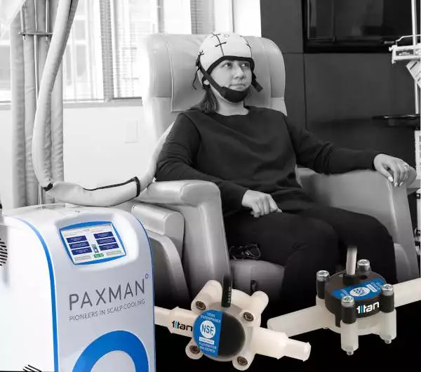 An innovative liquid-based cooling system by Paxman Coolers Ltd utilises Titan’s NSF-approved mini turbine flowmeters to monitor the rate of coolant flow around the patented cooling cap during chemotherapy treatment. The scalp cooling technology can alleviate the damage caused to the hair follicles by reducing the temperature of the scalp by a few degrees before, during, and after chemotherapy treatment. Titan’s mini turbine flowmeter is considered ideal for the Scalp Cooling System because it offers an excellent balance of measurement accuracy, long term resistance to coolant fluids, high reliability and is proven easy to maintain and cost effective.