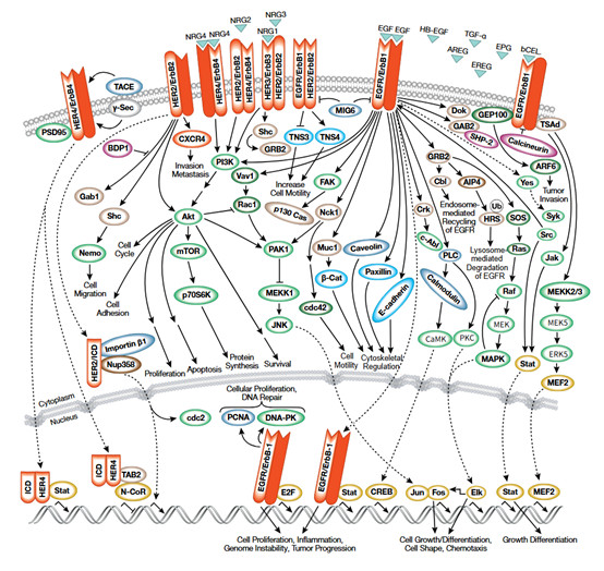| Monoclonal Antibodies | Trastuzumab, Pertuzumab | Block ErbB2 dimerization and signaling. |